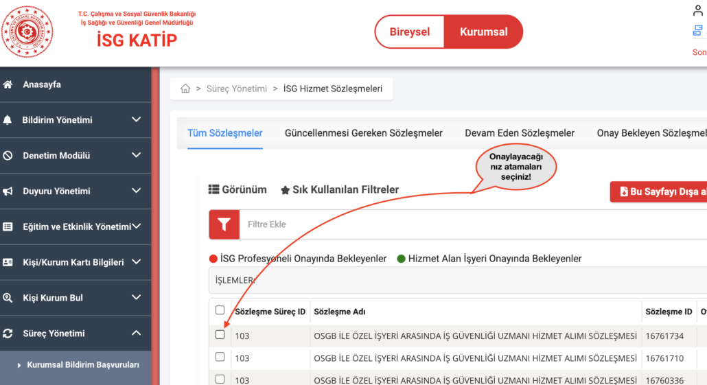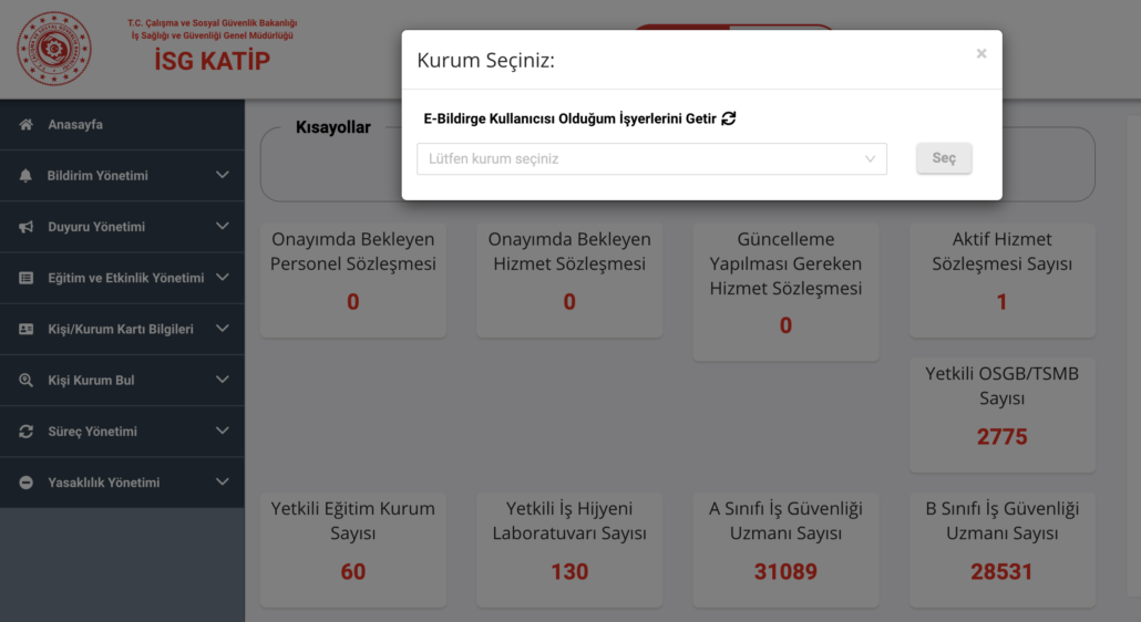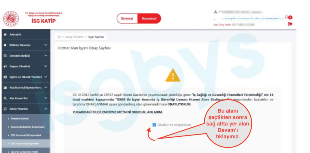 İSG Katip Sistemi üzerinden onay işleminin yapılması gerekenler;